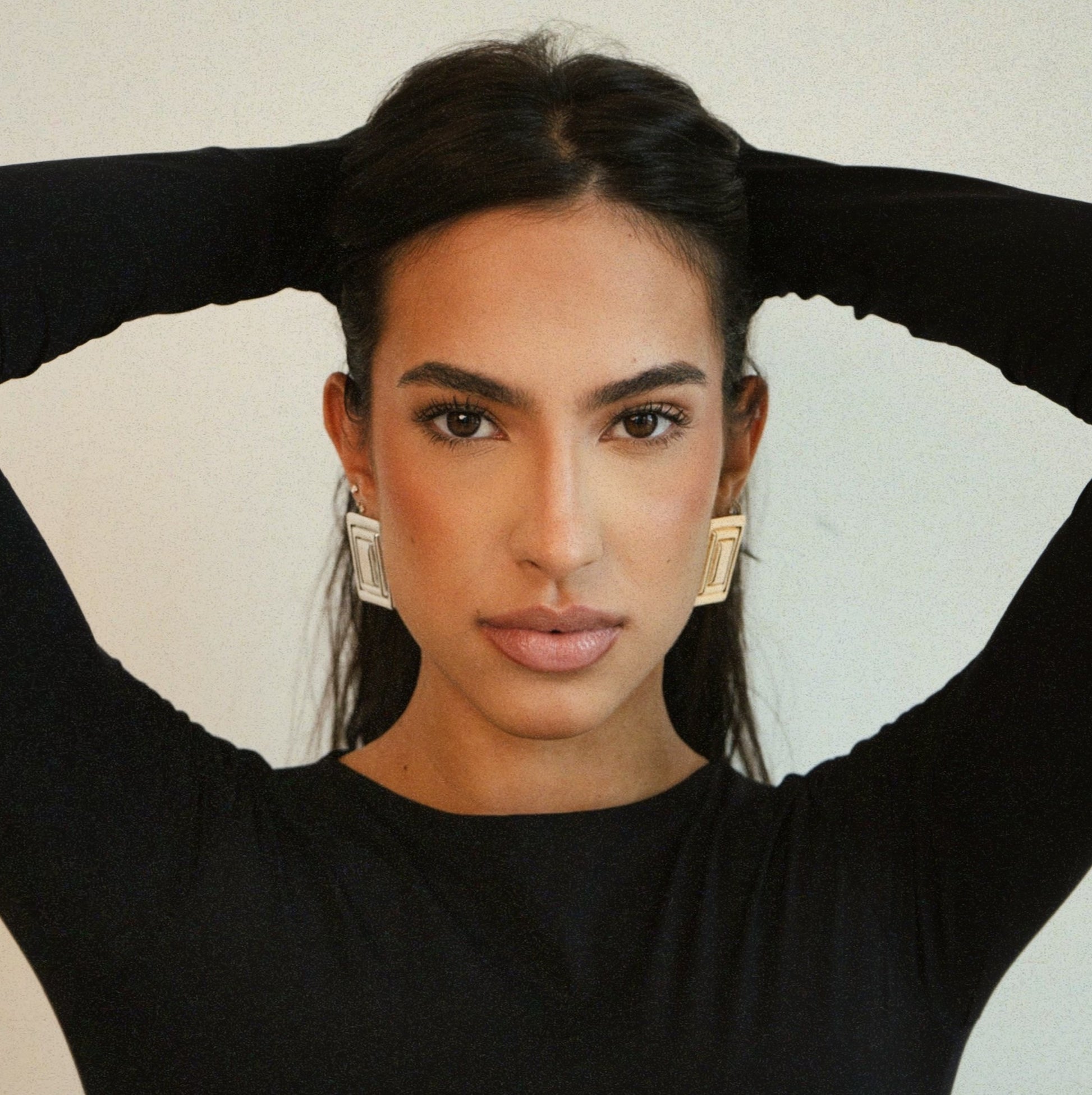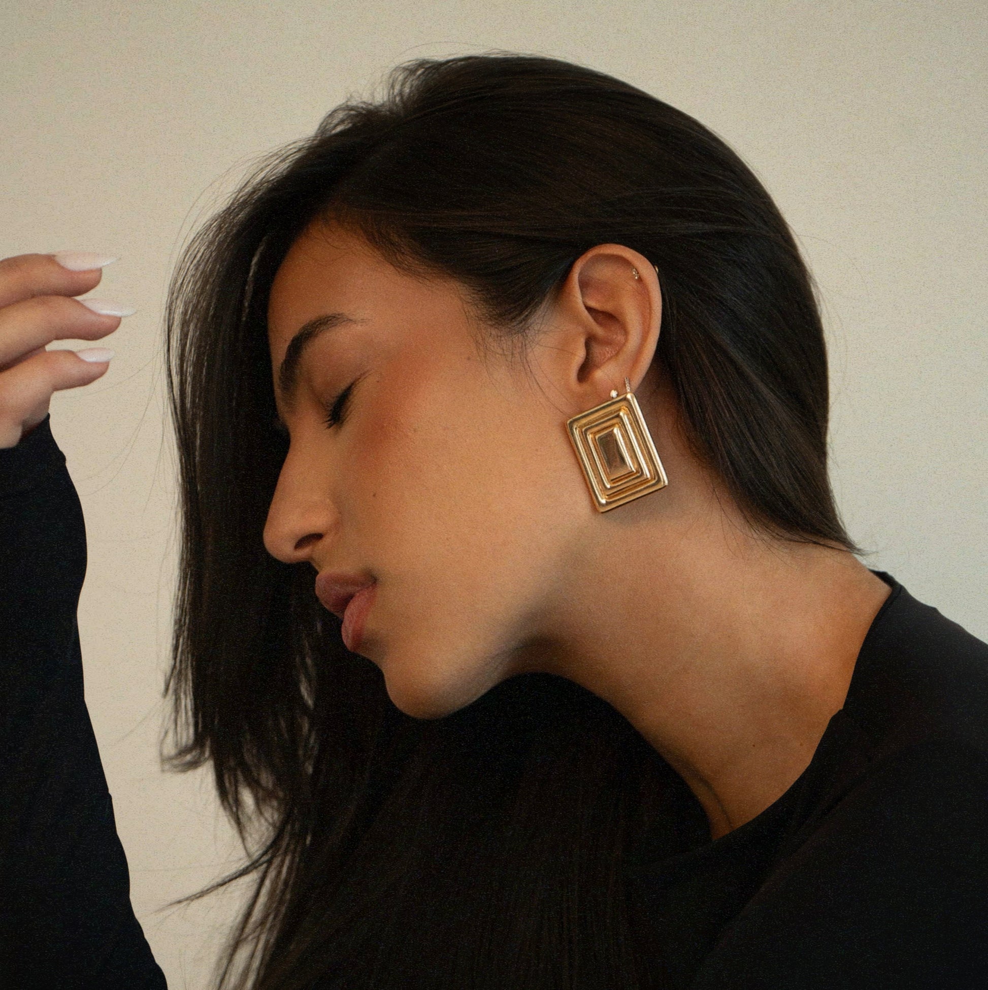 Brinco Cléo – Um mix perfeito entre o moderno e o sofisticado. Com design retangular, ele combina um lado liso e outro trabalhado em relevo, criando contraste e textura de forma elegante. Versátil e leve, é aquele acessório que levanta qualquer look, do básico ao mais produzido.